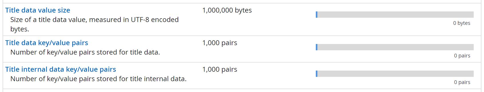 Title Data limits in PlayFab:
